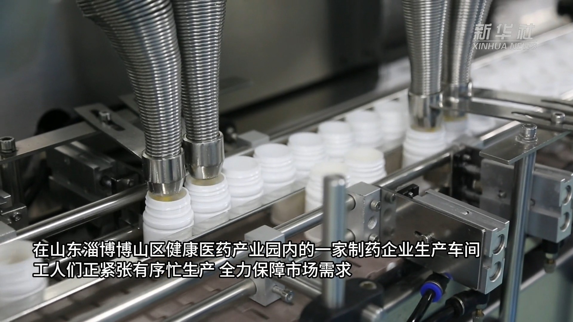 在山东淄博博山区健康医药产业园内的一家制药企业生产车间,工人们正紧张有序忙生产,全力保障市场需求,其2025年生产计划增加了40%。该企业新上的高端新药制剂项目也正加紧施工,项目完成后,生产效率可提高4到6倍。