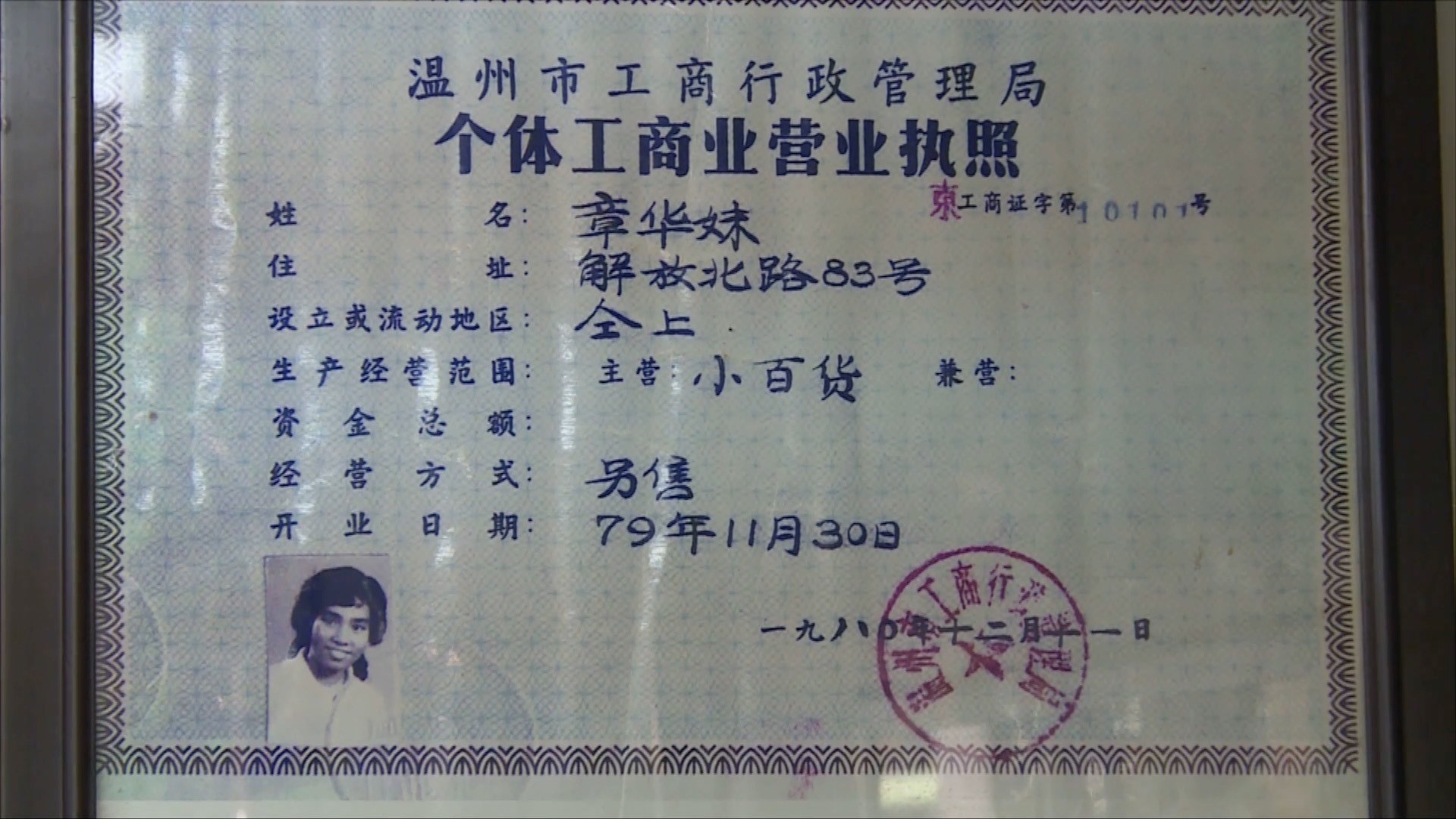 1980年,浙江温州的章华妹领到了第一张个体工商户营业执照。